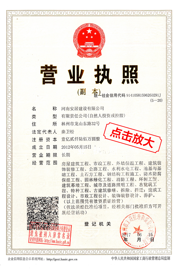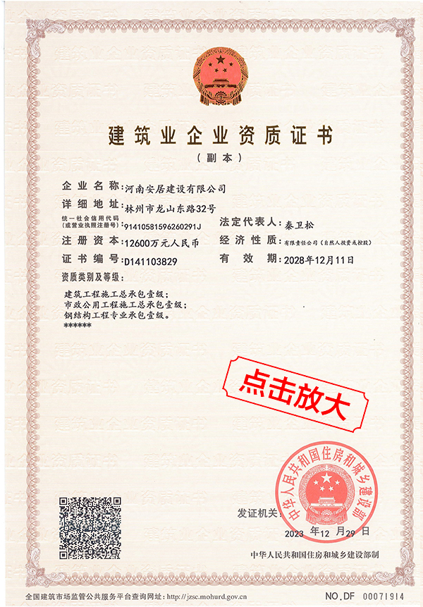 滔滔黃河哺育了中華民族拼搏向上的奮斗精神,巍巍太行造就了中原兒女的紅旗渠精神。百萬(wàn)林州人下太行,鑄就了中國(guó)建筑之鄉(xiāng)響當(dāng)當(dāng)?shù)囊燮放?。河南安居建設(shè)有限公司從誕生起血液里就流淌著紅色基因,秉承“安得廣夏千萬(wàn)間,大庇天下寒士俱歡顏”的擔(dān)當(dāng)精神,用鋼筋混凝土筑起了高樓大廈,也用一流品質(zhì)、家國(guó)情懷打造了安居建設(shè)的輝煌成績(jī)。公司成立于2012年,注冊(cè)資金12600萬(wàn)元,公司成立至今,擁有建筑,市政施工總承包等十項(xiàng)一級(jí)資質(zhì);其他二級(jí)等資質(zhì)共二十余項(xiàng)。公司秉承質(zhì)量第一,服務(wù)為主,堅(jiān)持垂直管理,從不設(shè)立分公司等分支機(jī)構(gòu)。